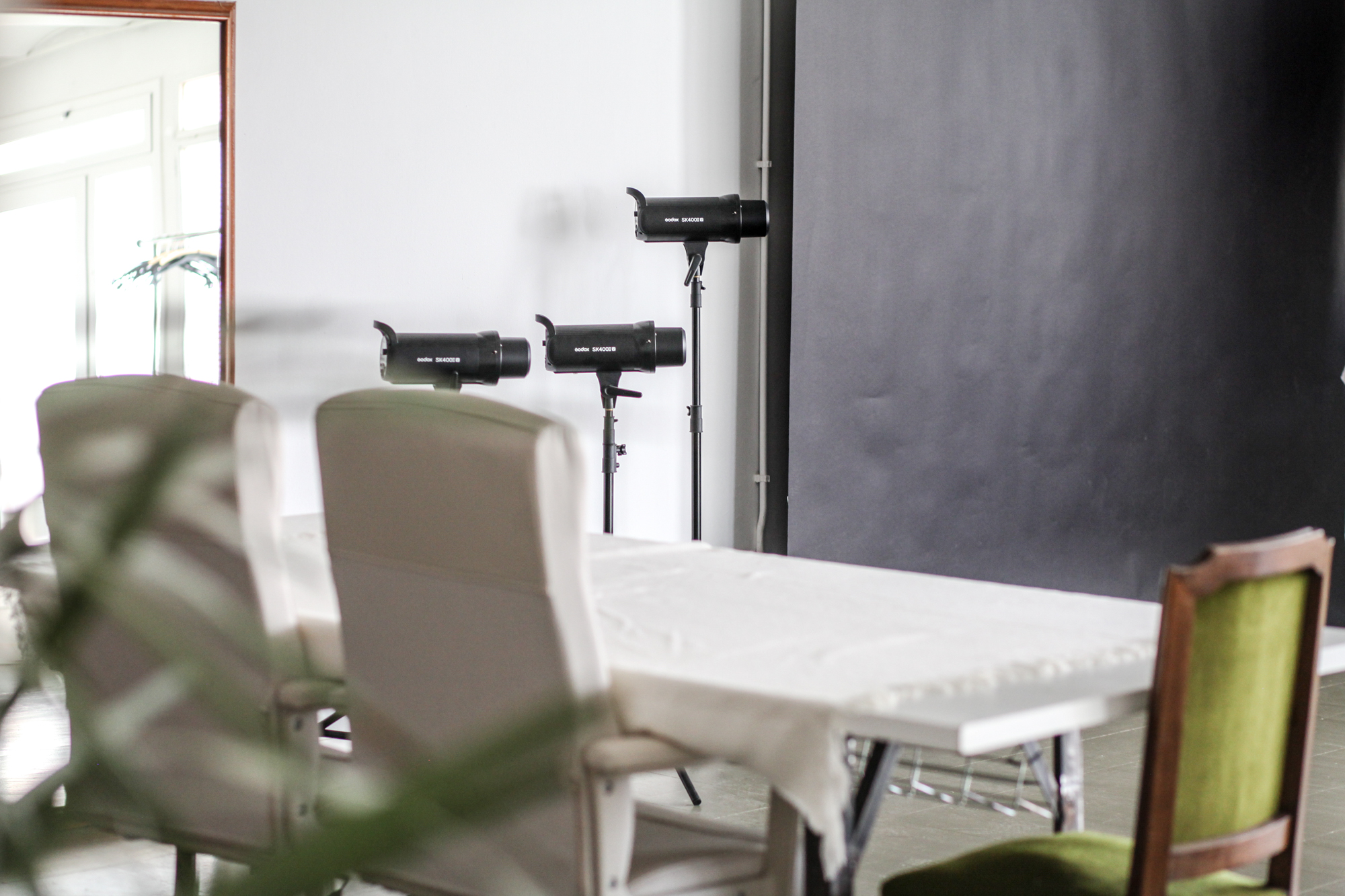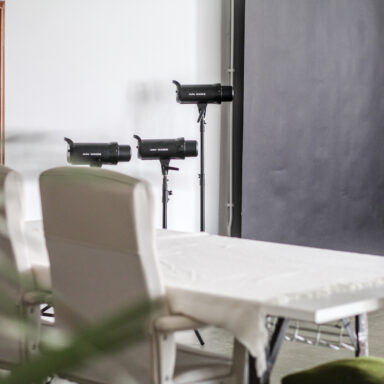 Nuestro estudio tiene 140 m2 cubiertos, en donde encuentras diferentes ambientes, todos amplios e iluminados. Tenemos tres cicloramas montados al lado de ventanales grandes por donde entra el sol alrededor del mediodía. Si necesitas crear tu iluminación hay blackouts que bloquean la luz natural, y equipamiento Godox, para que movilizarte sea más fácil.